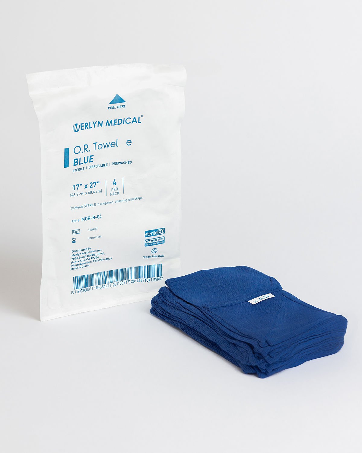 Sterile blue cotton OR towels with a plain weave. Available in 17 x 27 inch size, CSR wrapped with corner folds. Non-radiopaque and offered in packs of 4 or 6.